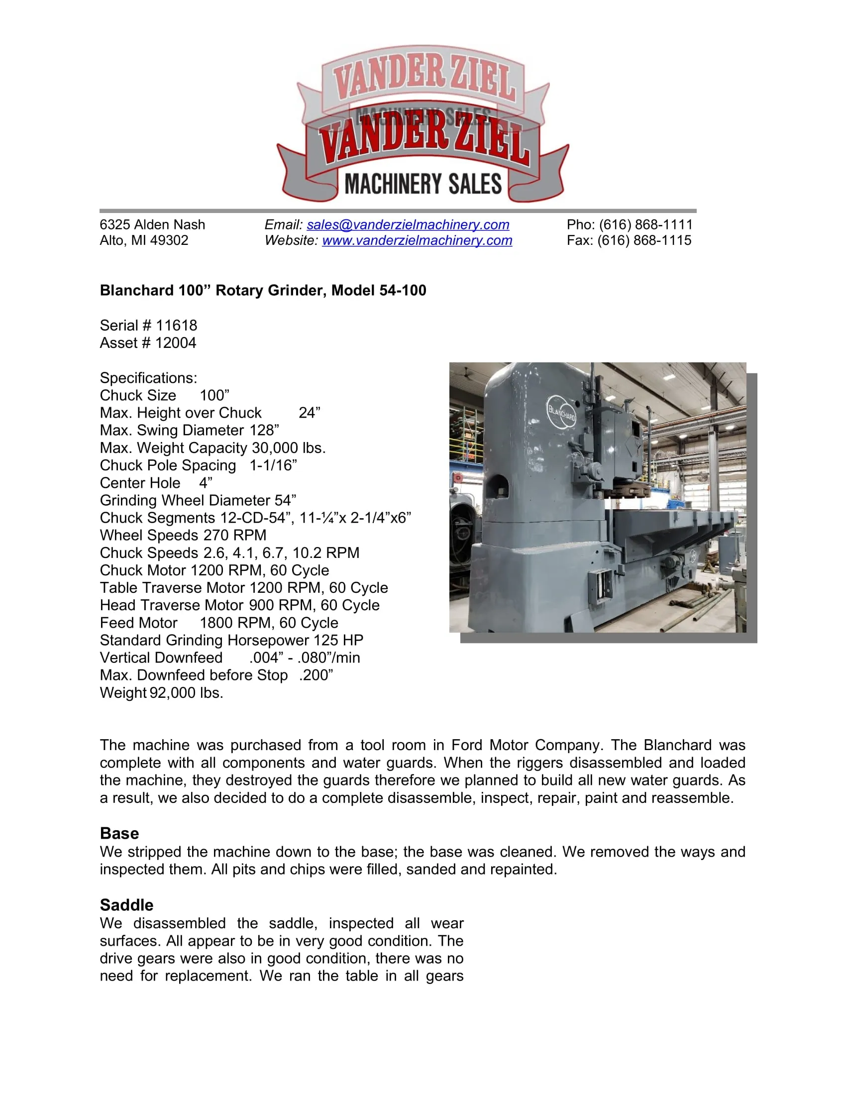 Blanchard 100” Rotary Grinder, Model 54-100
