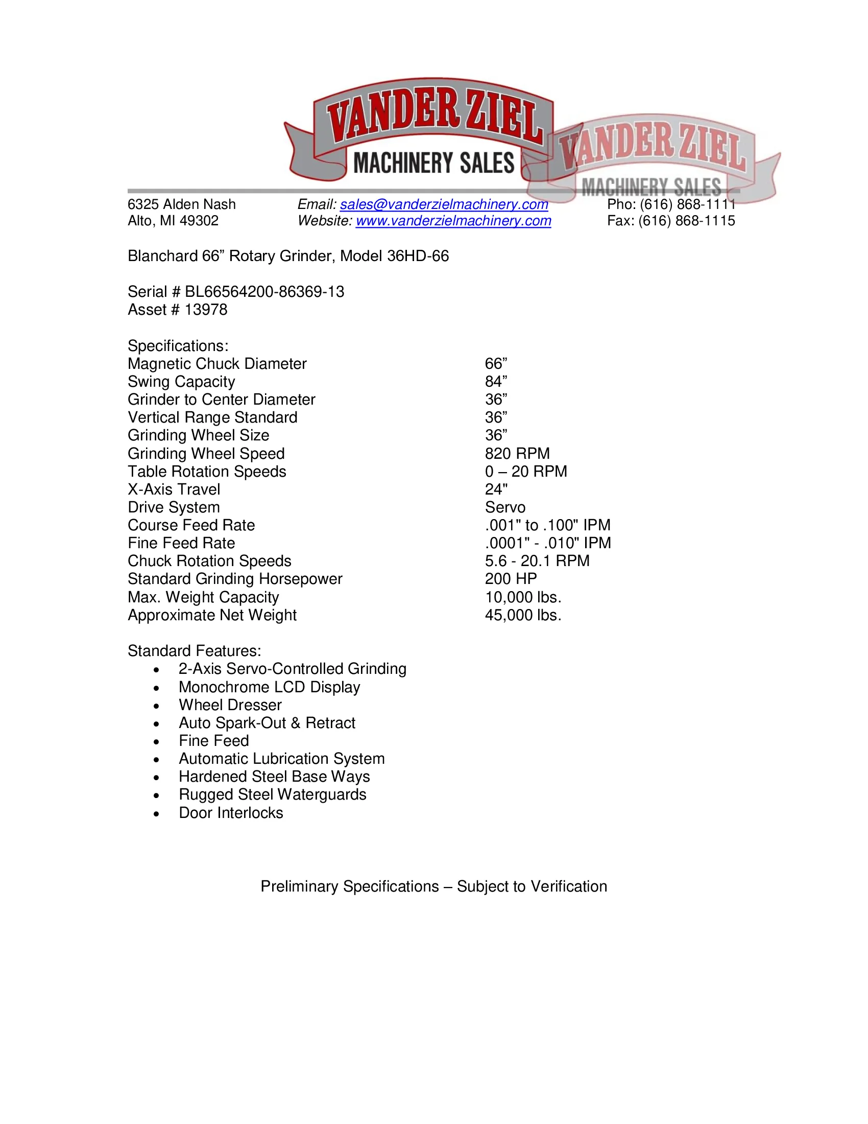 Preliminary Specifications – Subject to Verification