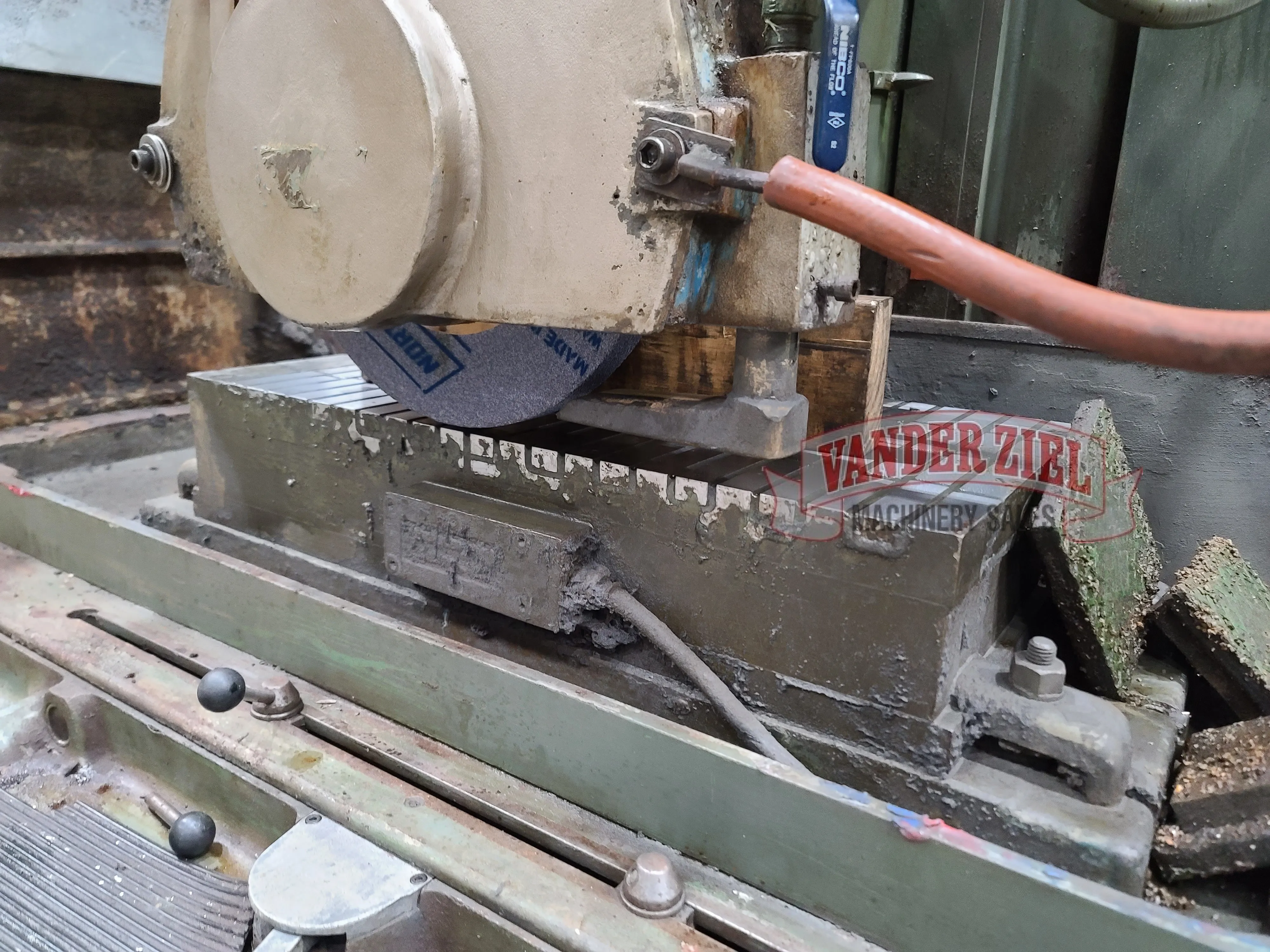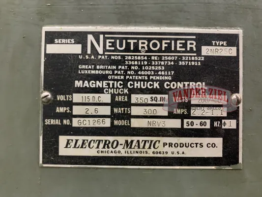 Grinder is equipped with Incremental Downfeed, over the wheel dresser and a Mini Tran Chuck Control.