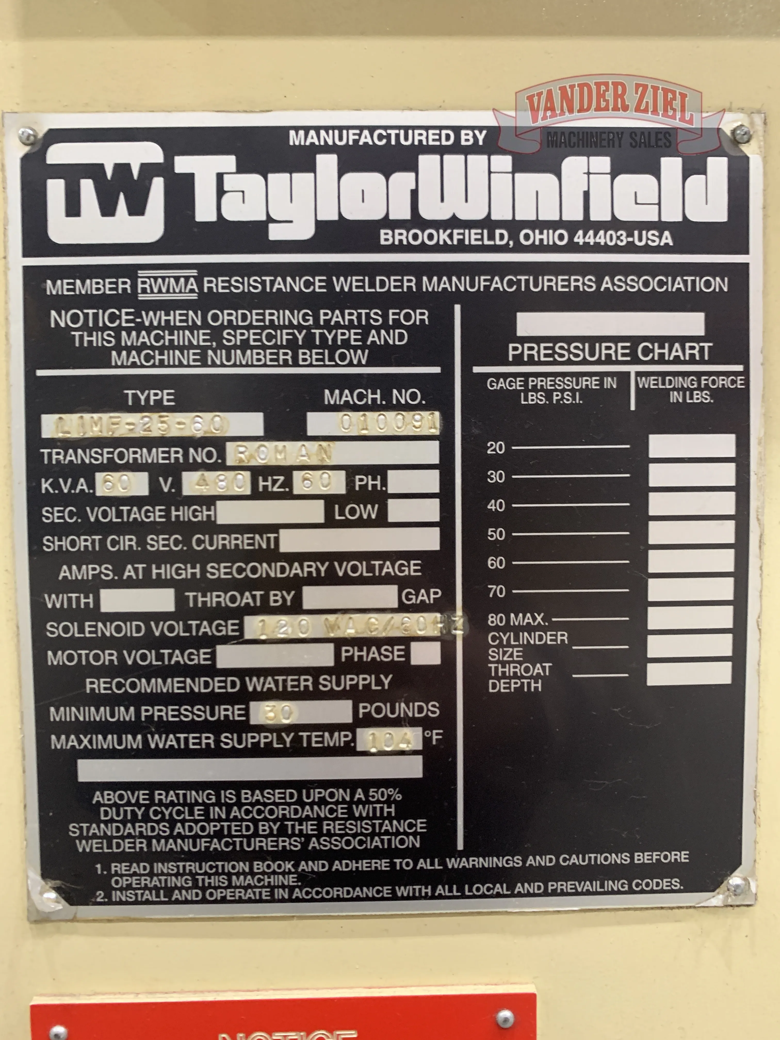 Taylor Winfield Resistance Welder, KVA 60