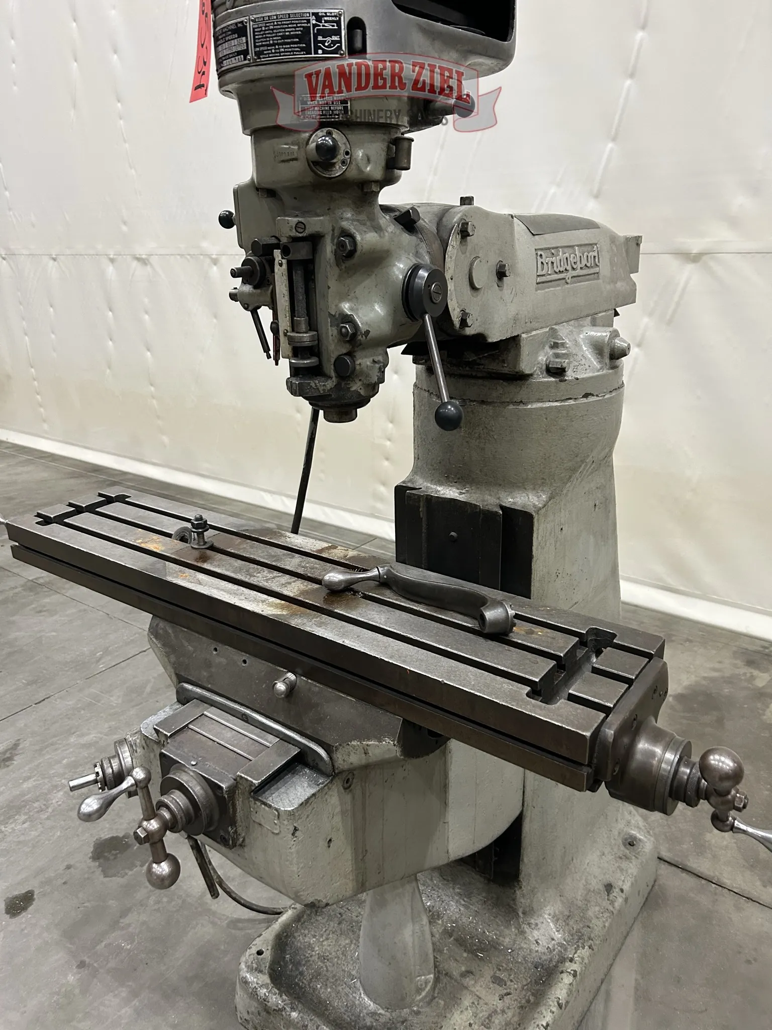 Bridgeport Step Pulley Vertical Knee Mill, 9” x 42” Table, 1 HP