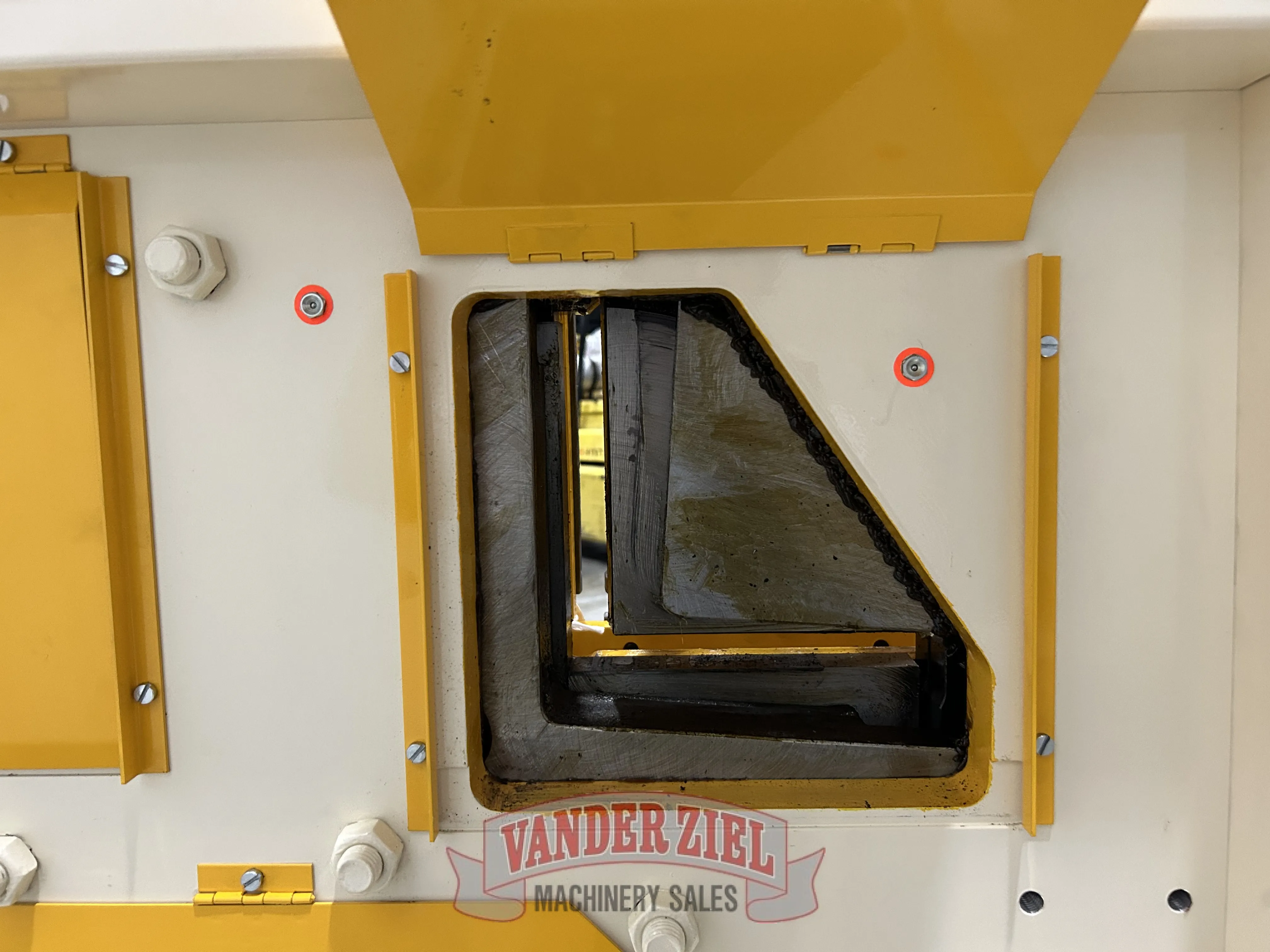 - Station for shearing angles at 90°: this station comes equipped with a Geka-designed patented system consisting of a floating upper blade that moves on a straight line, which allows the machine to shear angles deformation-free and with no loss of material.