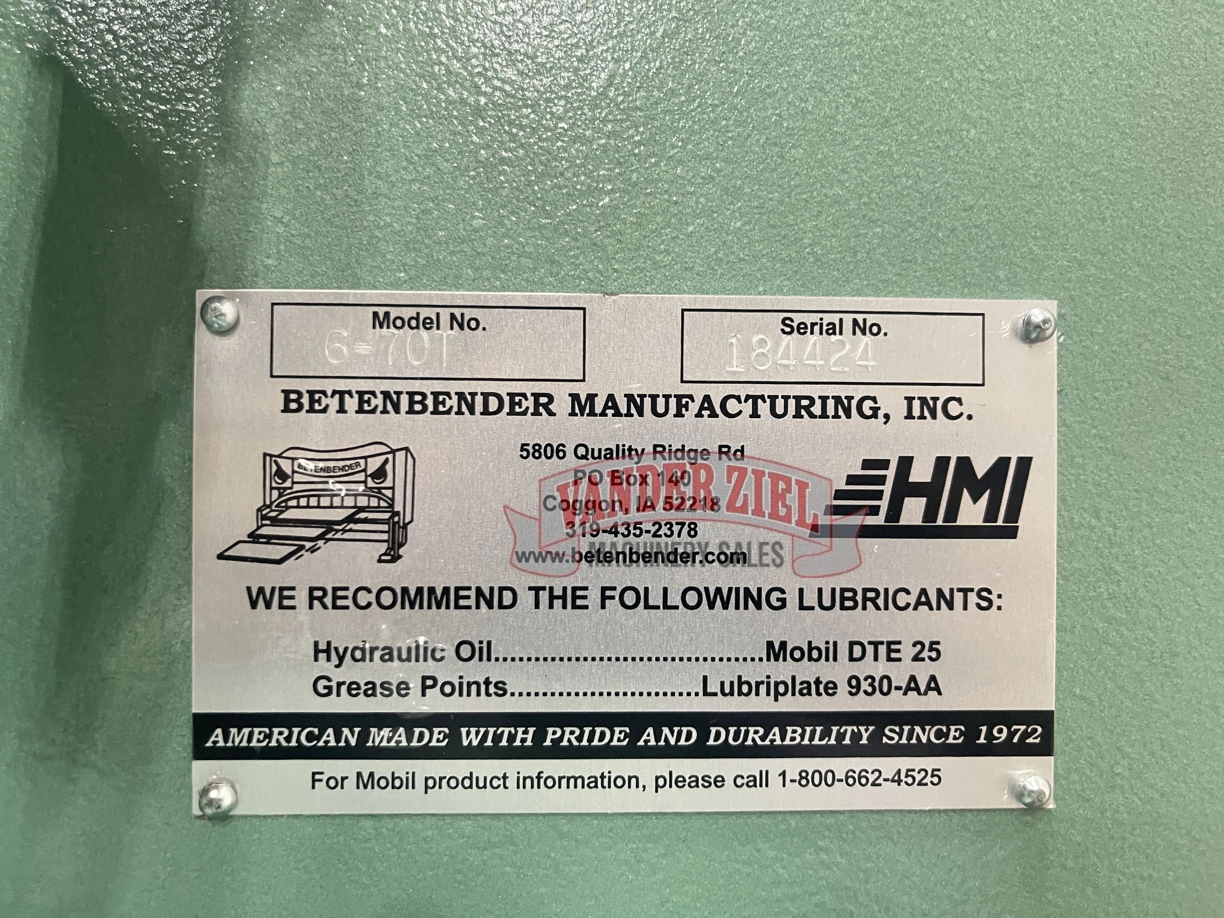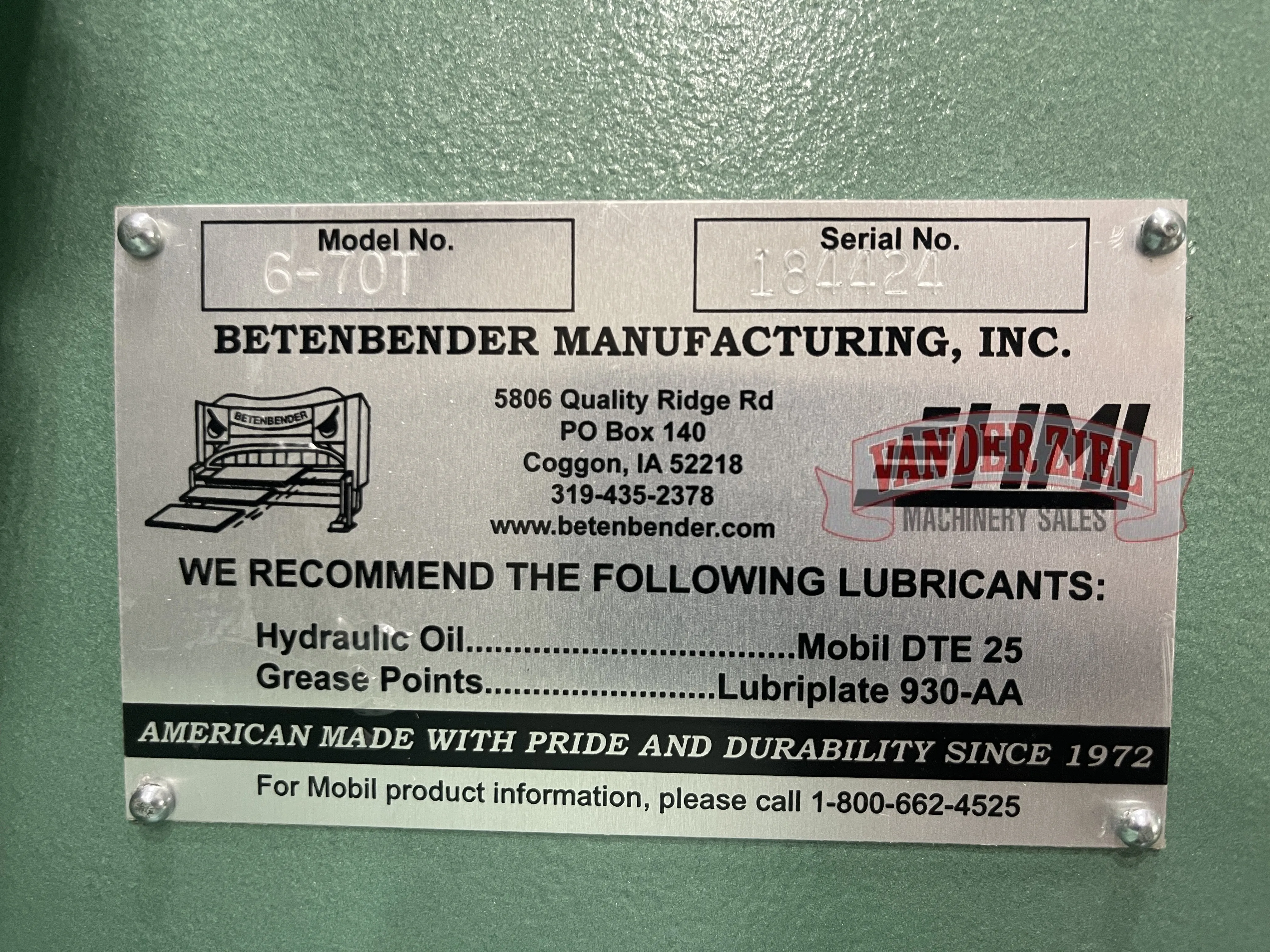 Betenbender 6' x 70 Ton Press Brake - NEW