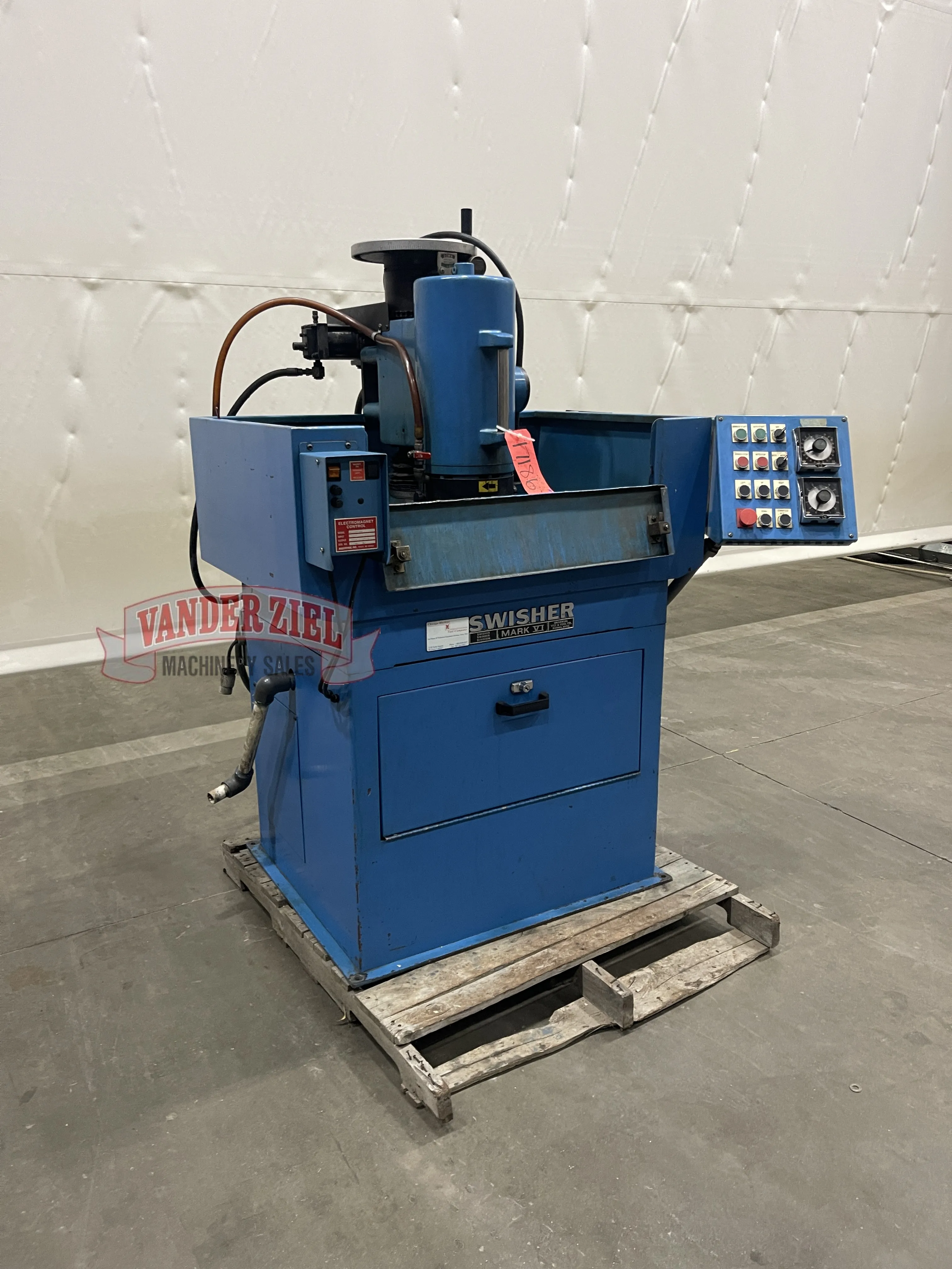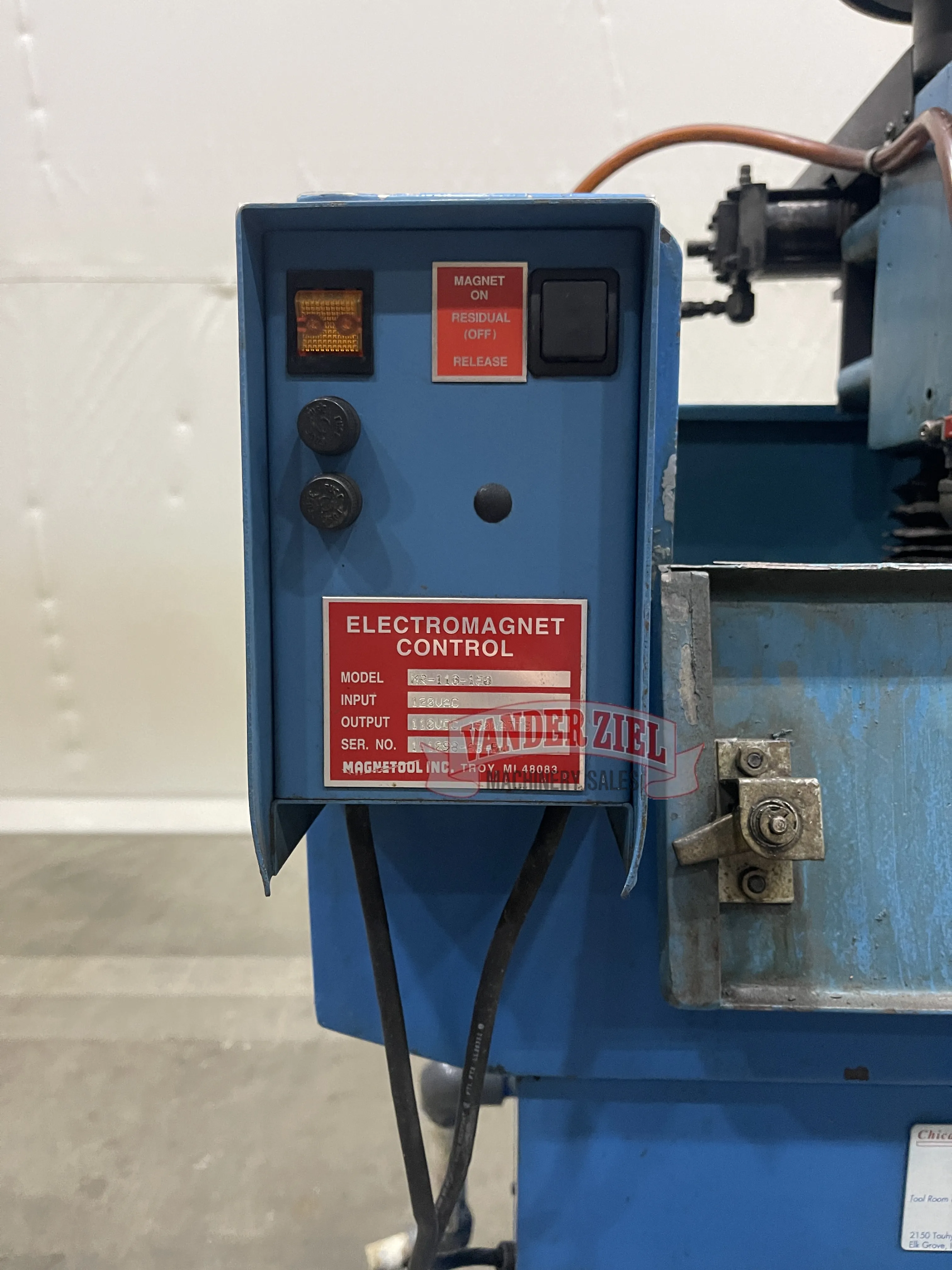 Grinder is equipped with Electro magnetic chuck.