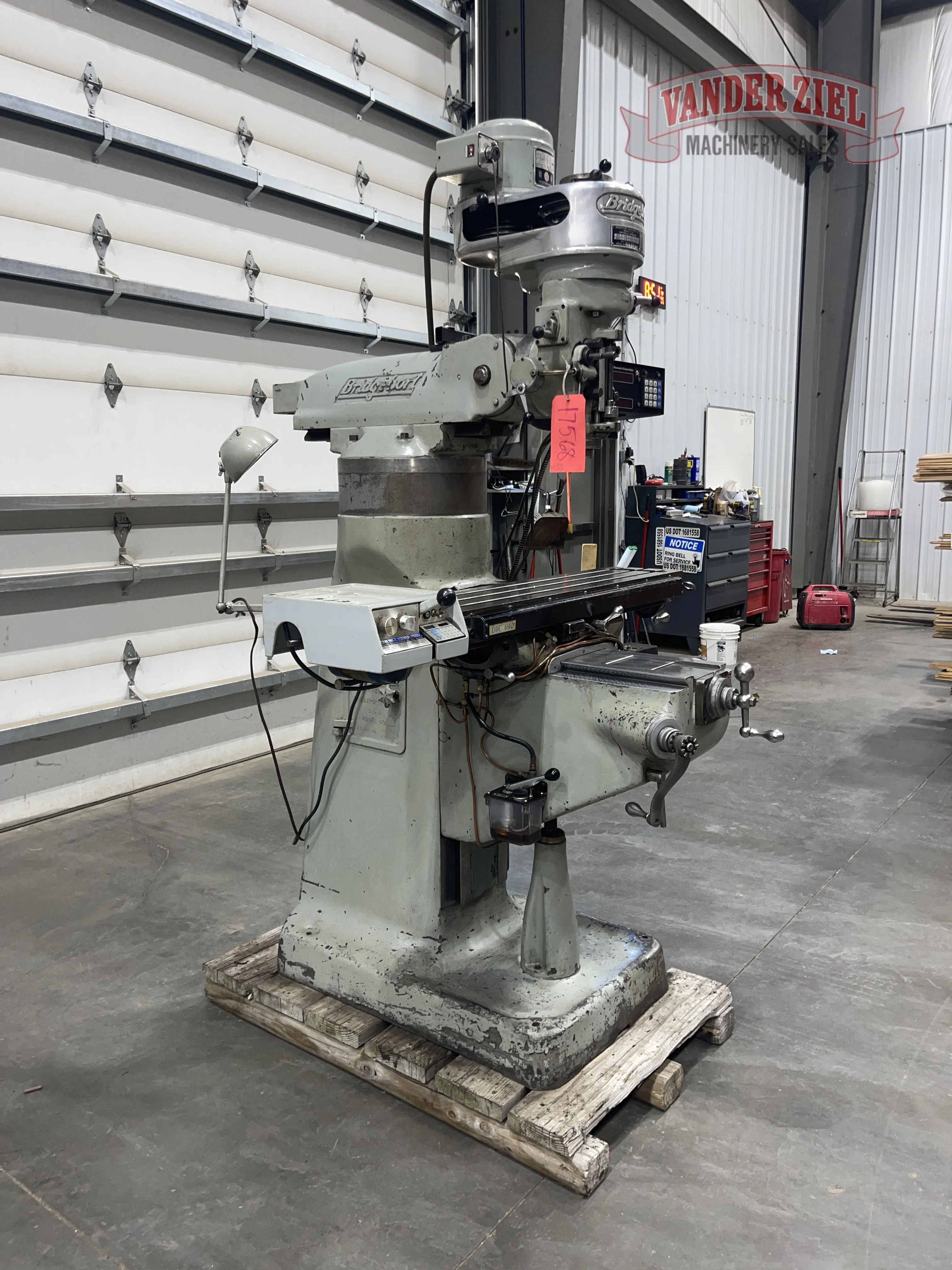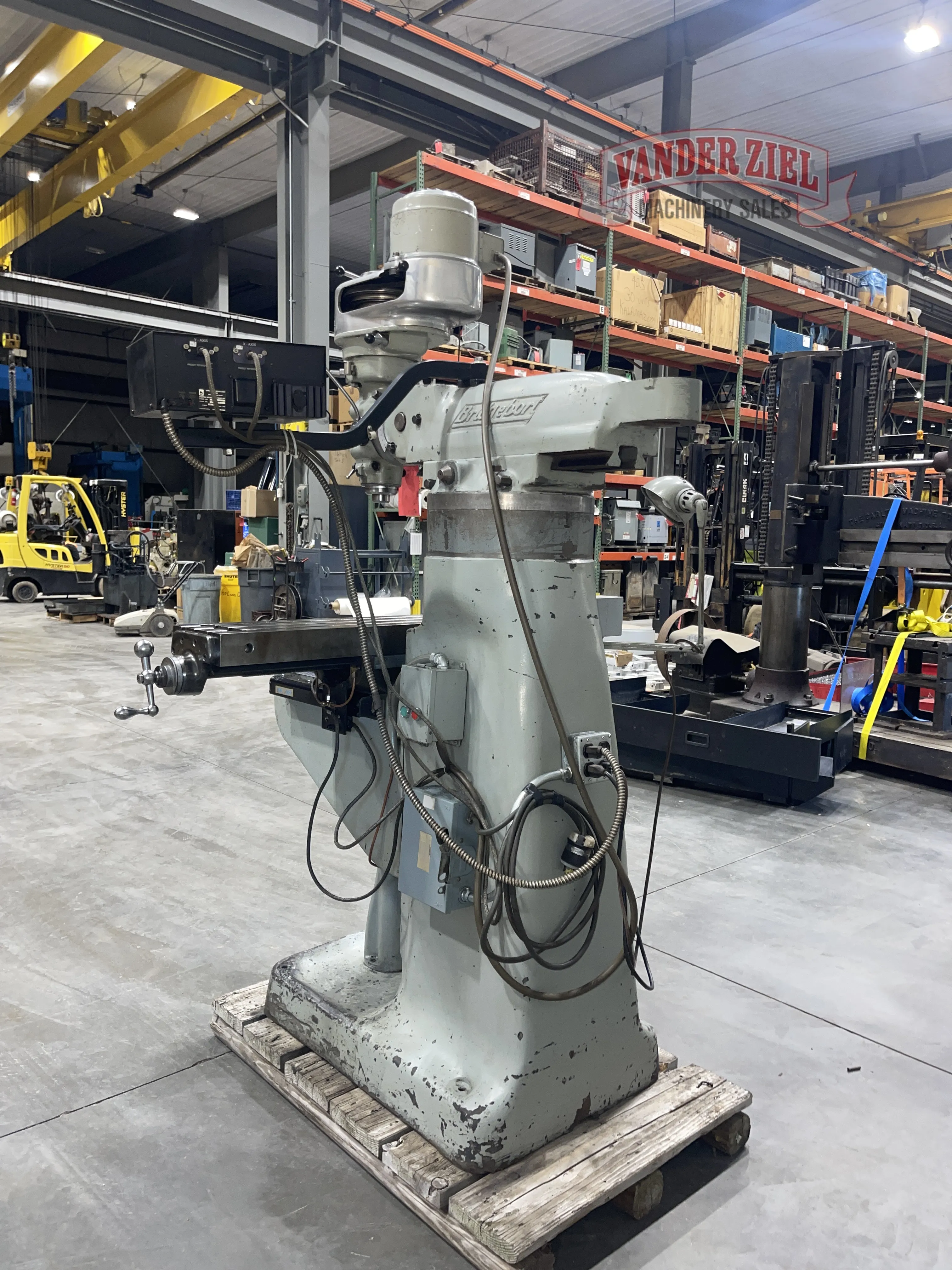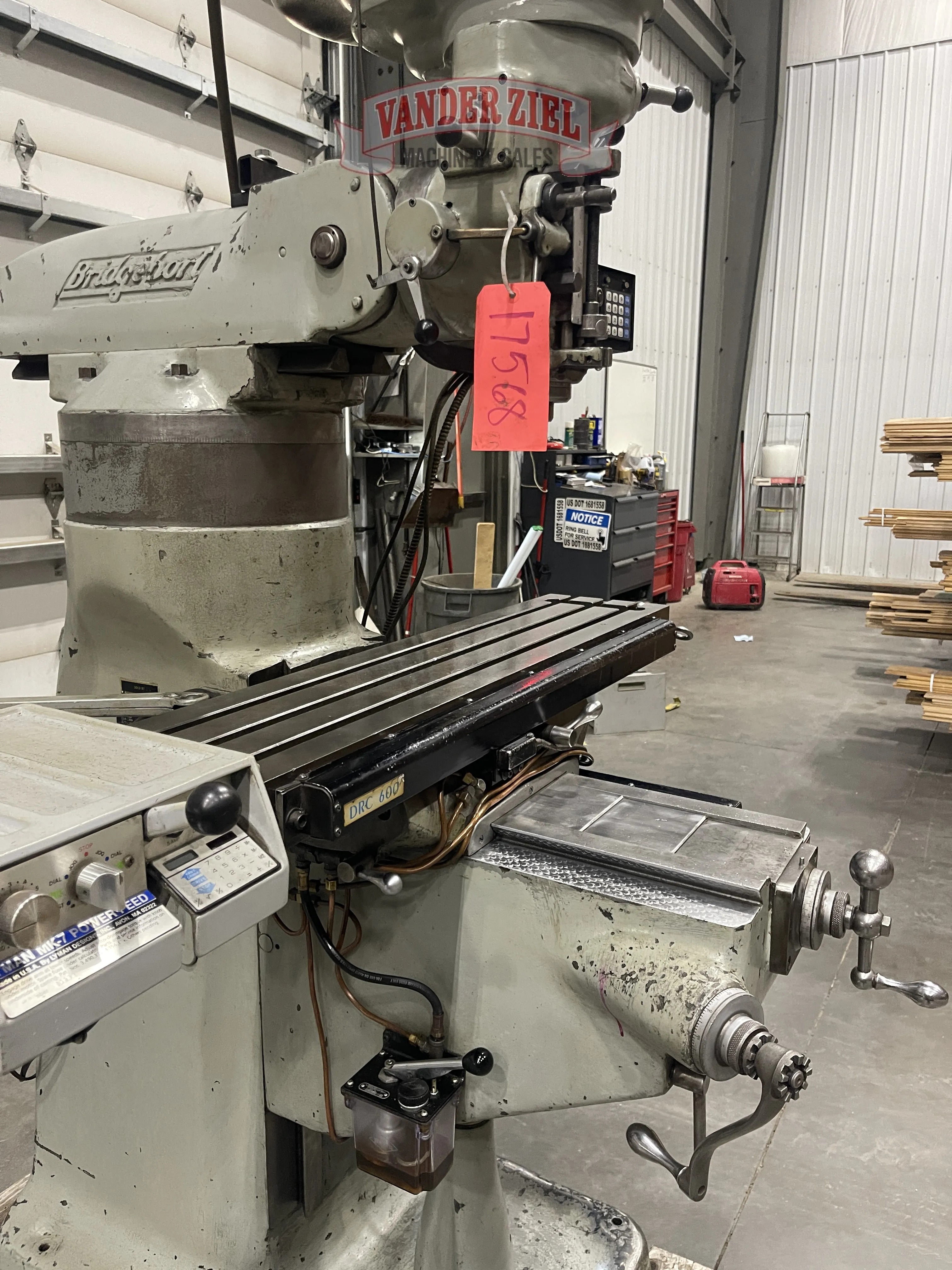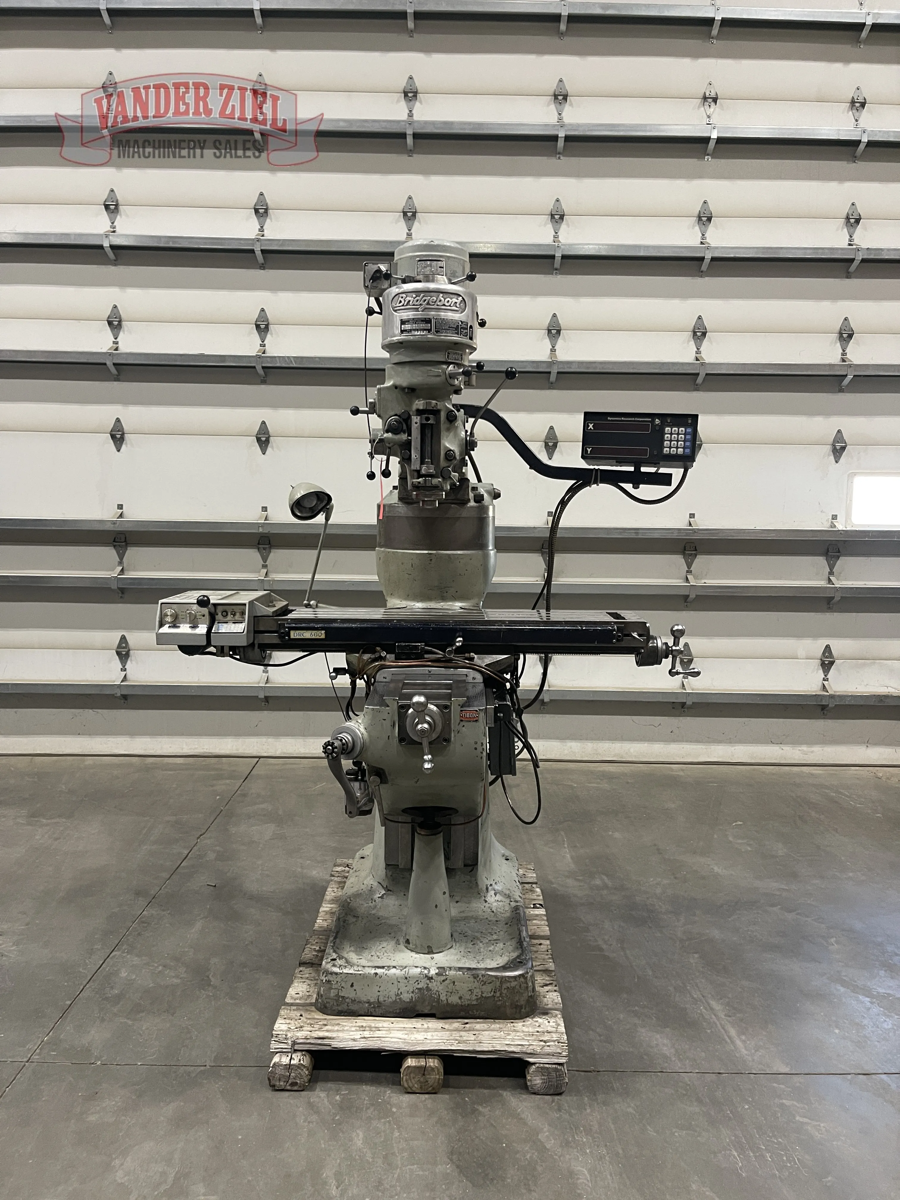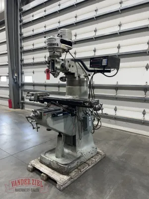 Mill is equipped with a powerfeed on X, DRC 2 Axis DRO, 4" Column Riser.