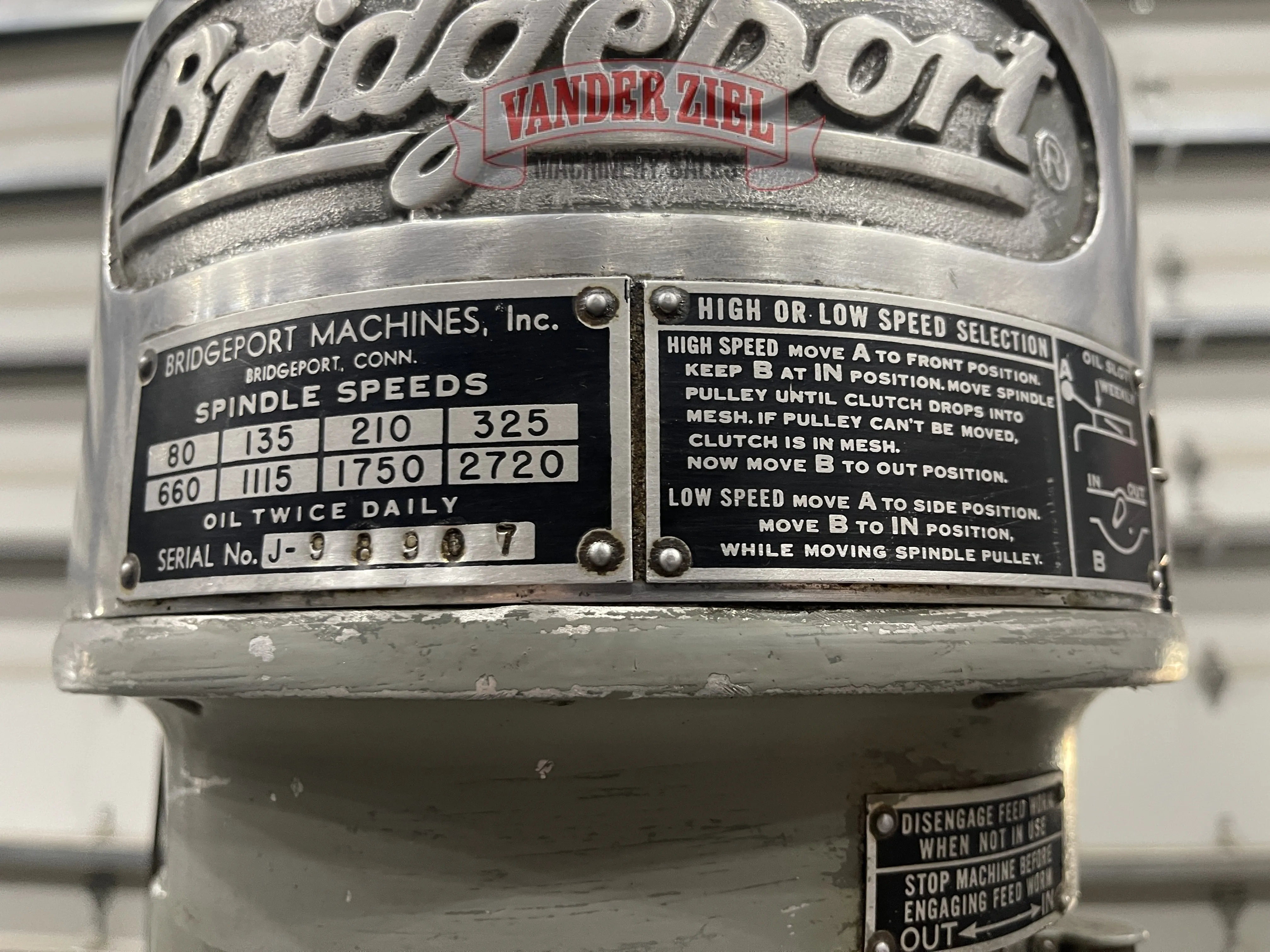 Bridgeport Step Pulley Vertical Knee Mill, 9” x 42” Table, 1 HP