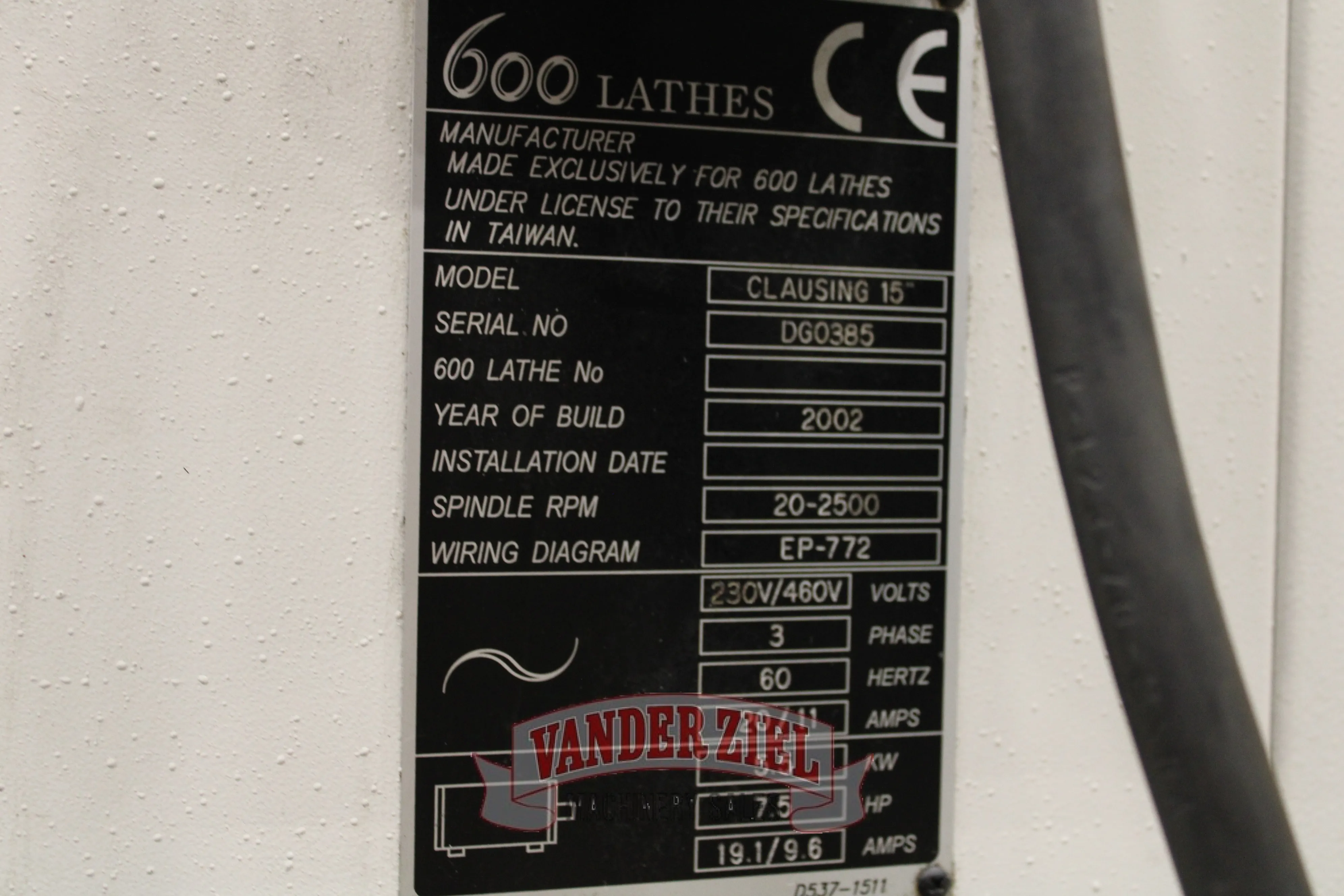 Clausing Colchester 15” x 50” Geared Head Lathe, 2.125” Spindle